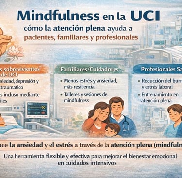 Estudio sobre mindfulness para familiares en la UCI: reduce ansiedad, depresión y estrés postraumático, demostrando factibilidad y efectividad clínica.